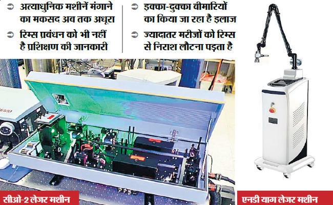 रिम्स के चर्म रोग विभाग में सीओ-2 लेजर मशीन और एनडी याग लेजर मशीन जैसी अत्याधुनिक मशीनें करीब एक साल पहले खरीदी गयी थीं. सीओ-2 लेजर मशीन की कीमत लगभग छह लाख रुपये है. वहीं, एनडी याग लेजर मशीन की कीमत लगभग 40 लाख रुपये है.
