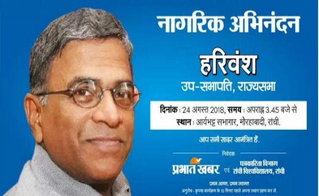 प्रभात खबर और पत्रकारिता विभाग, रांची विश्वविद्यालय के संयुक्त तत्वावधान में राज्यसभा के उपसभापति श्री हरिवंश का नागरिक अभिनंदन समारोह आज दोपहर 3.45 मिनट पर आर्यभट्ट सभागार, मोरहाबादी रांची में होगा.