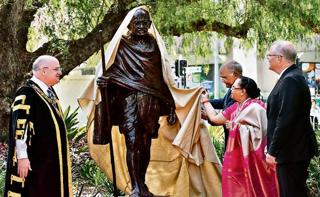 महात्मा गांधी की कांस्य प्रतिमा का अनावरण : राष्ट्रपति कोविंद ने गुरुवार को सिडनी में महात्मा गांधी की कांस्य प्रतिमा का अनावरण किया. उन्होंने कहा कि संघर्ष के इस दौर में अहिंसा और शांतिपूर्ण सह-अस्तित्व का संदेश अधिक प्रासंगिक है.