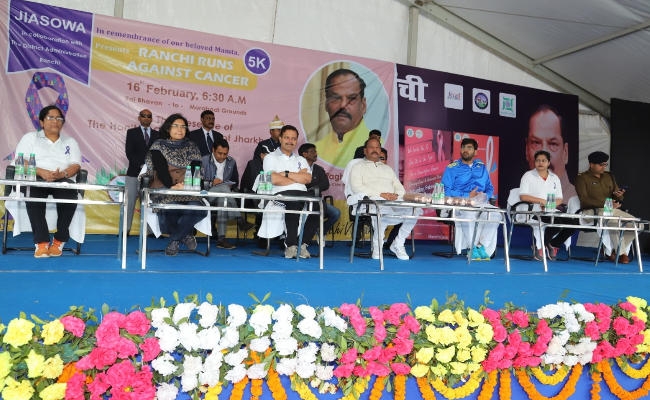 जिला प्रशासन के साथ ‘रांची रन अगेंस्ट कैंसर’ का आयोजन करने वाली संस्था JIASOWA ने घोषणा की कि शहीद विजय सोरेंग के 5 बच्चों की पढ़ाई का खर्च जेसोवा उठायेगा. यह भी एलान किया गया कि इस दौड़ में शामिल लोगों के द्वारा दी गयी राशि भी शहीद परिवार को दी जायेगी. राज्यपाल द्रौपदी मुर्मू ने स्व ममता की स्मृति को समर्पित रांची रन अगेंस्ट कैंसर को हरी झंडी दिखाकर राजभवन से रवाना किया. इसमें हर उम्र के हजारों लोगों ने भाग लिया.