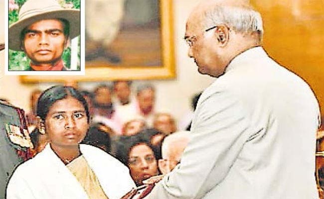 रांची/चान्हो : राष्ट्रपति रामनाथ कोविंद ने मंगलवार को उग्रवादियों से लोहा लेते हुए शहीद हुए असम राइफल्स के जवान चान्हो के नवाडीह निवासी जयप्रकाश उरांव को मरणोपरांत शौर्य चक्र प्रदान किया. राष्ट्रपति भवन में शहीद जयप्रकाश उरांव की पत्नी संगीता उरांव ने सम्मान ग्रहण किया.