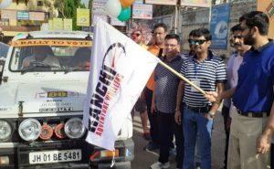 जिला निर्वाचन पदाधिकारी सह उपायुक्त रांची श्री राय महिपत रे द्वारा सैनिक बाजार (पार्किंग) से सुबह 7:30 बजे काफिले को रवाना किया गया. जो सैनिक बाजार, अल्बर्ट एक्का चौक, शहीद चौक, कचहरी चौक, किशोरी यादव चौक, हरमू रोड से होकर गुजरी, सहजानंद चौक, हरमू चौक, अरगोड़ा चौक, बिरसा चौक, हिनू चौक, विवेकानंद चौक, प्रसाद चौक होते हुए रैली वापस सैनिक मार्केट पहुंची. रैली में 50 साइकिलिस्ट, ट्विन स्कल्स प्रीमियम मोटर साइकिल, हार्ले डेविडसन, ट्रायम्फ, यामाहा 1000, डुकाटी, प्रीमियम कारें शामिल हुईं.