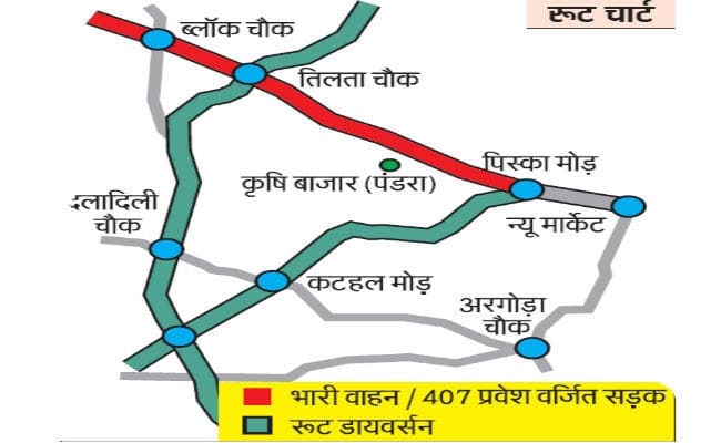 तिलता चौक से पिस्का मोड़ तक के सड़क मार्ग पर भारी वाहनों और मालवाहक वाहनों का प्रवेश छह मई की सुबह छह बजे से इवीएम को पंडरा स्थित स्ट्रांग रूम में जमा करने तक वर्जित रहेगा.