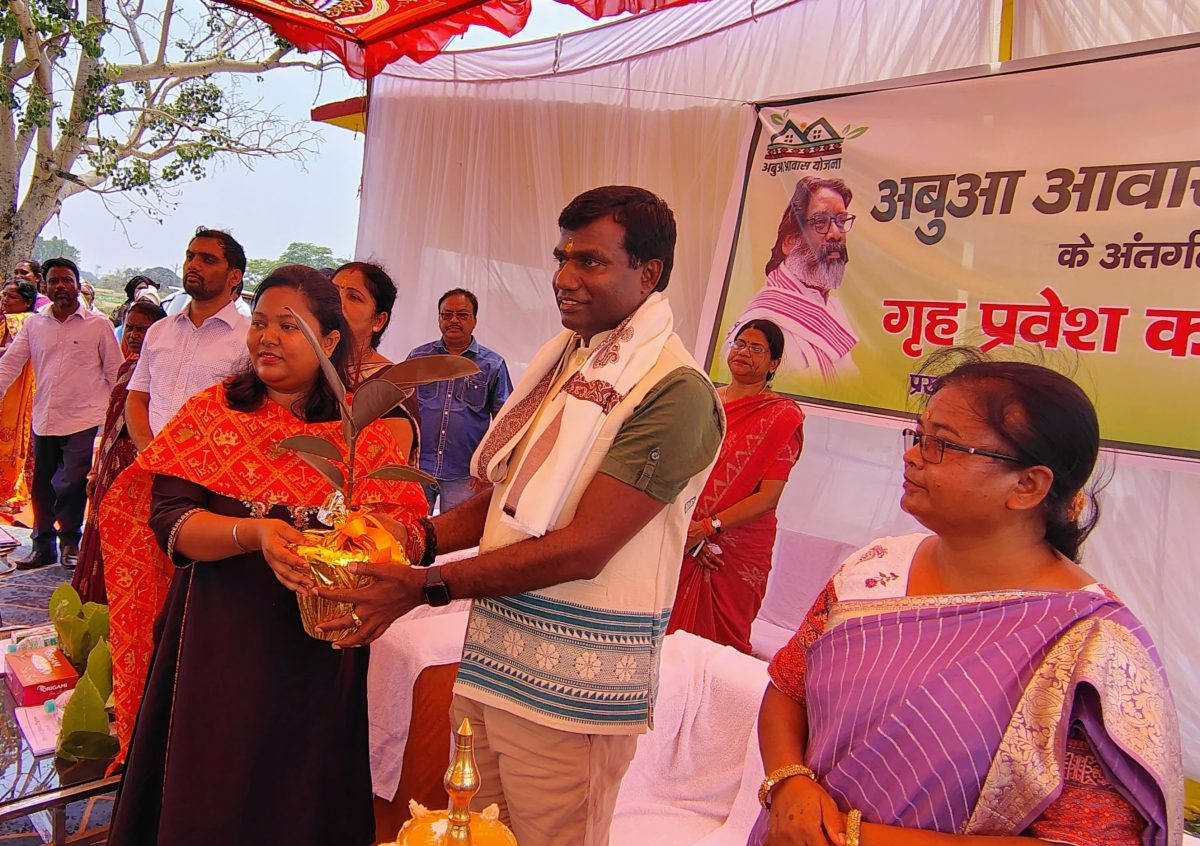 नगड़ी प्रखंड के साहेर पंचायत के हरही गांव में शनिवार को मुख्यमंत्री अबुआ आवास योजना के लाभुकों को गृह प्रवेश कराया गया.