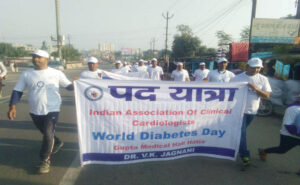इस पद यात्रा की अगुआई गुप्ता मेडिकल हॉल के अविनाश गुप्ता और आर्यन ने की. विश्व मधुमेह दिवस के मौके पर चिकित्सा शिविर का भी आयोजन किया गया. शिविर में रक्त शर्करा, रक्त चाप, एचबीएवनसी, न्यूरोपैथी की जांच निःशुल्क की गयी. शिविर में लोगों का इलाज और परामर्श डॉ वी के जगनाणी ने दी. इस कार्यक्रम को सफल बनाने में बच्चों और बड़ी संख्या में लोगों का महत्वपूर्ण योगदान रहा.