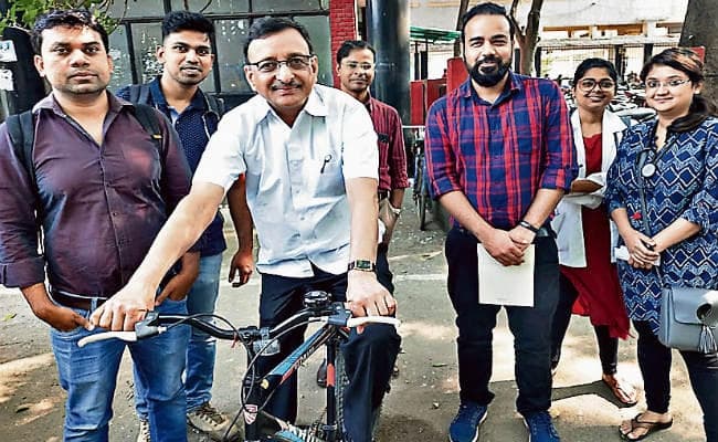 रांची : अक्सर देखा जाता है कि मरीजों के इलाज का तनाव झेल रहे डॉक्टर खुद के स्वास्थ्य के प्रति चिंतित नहीं रहते हैं. ऐसे में राजधानी के डॉक्टरों व लोगों को स्वास्थ्य के प्रति जागरूक करने व पर्यावरण की रक्षा का संदेश देने के लिए रिम्स सर्जरी विभाग के एसोसिएट प्रोफेसर डॉ मृत्युंजय सरावगी साइकिल का उपयोग कर रहे हैं.
