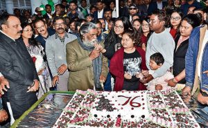 शिबू सोरेन ने 76 पाउंड का केक काटा