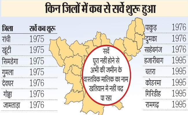 सर्वे का काम पूरा नहीं होने के कारण 1935 के सर्वे के आधार पर तैयार खतियान से हो रहा कामकाज