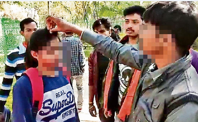 कार्यकर्ताओं ने कहा: यदि प्रेम है, तो शादी कर लो. इसके बाद एक प्रेमी जोड़े को शादी करने के लिए मजबूर किया. प्रेमी के हाथ में सिंदूर थमाया और प्रेमिका की मांग भरवायी.