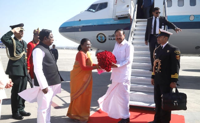 दो दिन की झारखंड यात्रा पर उपराष्ट्रपति एम वेंकैया नायडू रांची पहुंचे, राज्यपाल द्रौपदी मुर्मू ने किया स्वागत