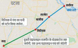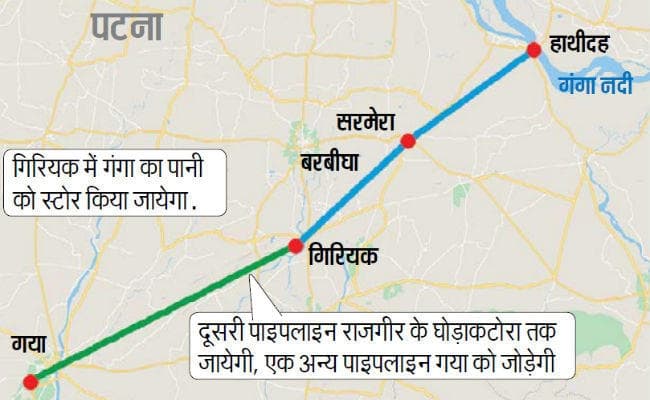 फिर वहां से एक पाइपलाइन राजगीर के घोड़ाकटोरा तक जायेगी और दूसरी पाइपलाइन गया जायेगी. दूसरे चरण में गिरियक से तीसरी पाइपलाइन नवादा तक जायेगी. इस संबंध में जल संसाधन विभाग की मांग पर पथ निर्माण विभाग ने अनापत्ति प्रमाणपत्र (एनओसी) दे दिया है. वहीं, एनएचएआइ से भी एनओसी जल्द मिलने की संभावना है. इसके बाद इस परियोजना पर काम शुरू हो जायेगा. राज्य कैबिनेट से 18 दिसंबर को इसकी मंजूरी मिल चुकी है.