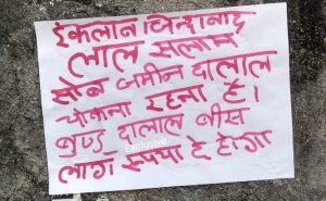 रांची : झारखंड की राजधानी रांची के बुंडू थाना क्षेत्र में एक पोस्टर ने सनसनी फैला दी है. खासकर भू-माफियाओं में. अज्ञात लोगों ने बुंडू में वन विभाग की दीवार पर एक पोस्टर साटकर भू-माफिया को चेतावनी दी है. इसमें सभी जमीन दलालों को चौकन्ना रहने की हिदायत दी गयी है. कहा गया है कि बुंडू के दलालों को 20 लाख रुपये देने होंगे. सफेद रंग के कागज पर लाल रंग की स्याही से लिखे गये इस पोस्टर में सबसे पहले इंकलाब जिंदाबाद लिखा गया है.