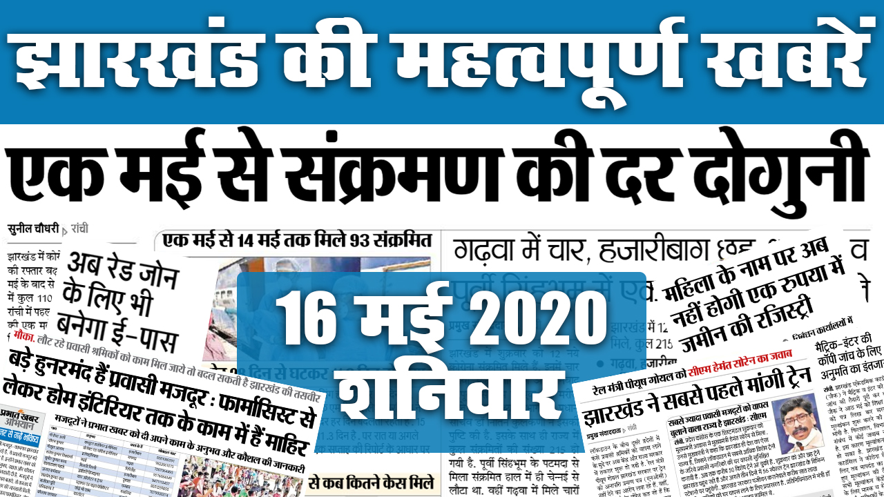 16 may : झारखंड में एक मई से संक्रमण की दर हुई दोगुनी, अब रेड जोन के लिए भी बनेगा ई-पास, जानें अखबार में और क्या है खास