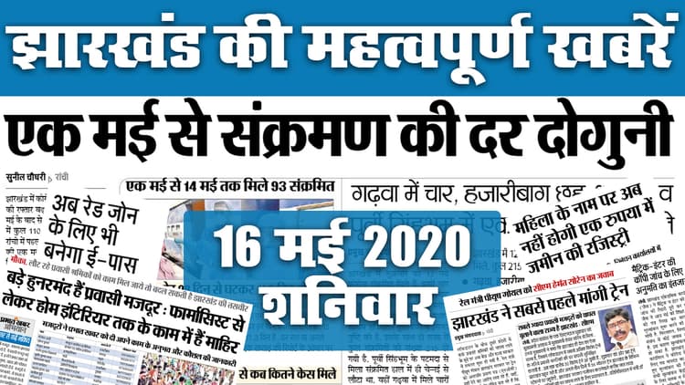 16 may : झारखंड में एक मई से संक्रमण की दर हुई दोगुनी, अब रेड जोन के लिए भी बनेगा ई-पास, जानें अखबार में और क्या है खास