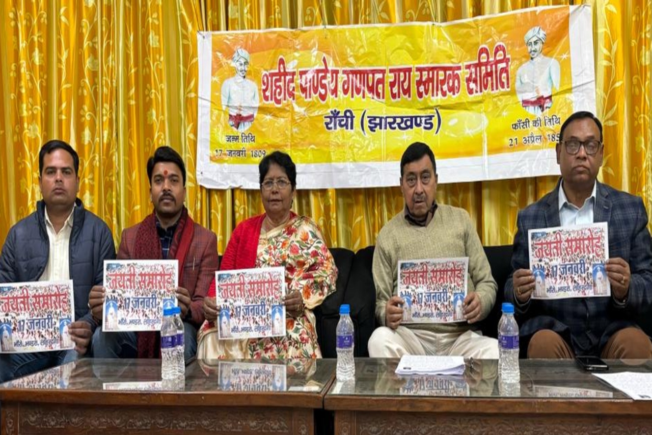 रांची: 1857 के क्रांतिवीर शहीद पांडेय गणपत राय की 215वीं जयंती सह विकास मेले का आयोजन 17 जनवरी को लोहरदगा में किया जाएगा. सुबह 11 बजे से उनकी जन्मस्थली आदर्श ग्राम भौरो (प्रखंड-भंडरा, जिला-लोहरदगा) में कार्यक्रम का आयोजन होगा. शहीद पांडेय गणपत राय स्मारक समिति की अध्यक्ष व प्रपौत्री डॉ वंदना राय ने रविवार को रांची में प्रेस कॉन्फ्रेंस कर ये जानकारी दी. आपको बता दें कि लोहरदगा जिला प्रशासन एवं शहीद पांडेय गणपत राय स्मारक समिति के संयुक्त तत्वावधान में जयंती समारोह सह विकास मेले का आयोजन किया जाता है. प्रेस वार्ता में शहीद पांडेय गणपत राय स्मारक समिति के संरक्षक डॉ अजीत सहाय, संयोजक डॉ राजेश कुमार लाल, डॉ सुभाष साहू, आशुतोष द्विवेदी शामिल थे.