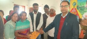 25 खलारी 04, लाभुक को साड़ी का वितरण करते सीओ.
