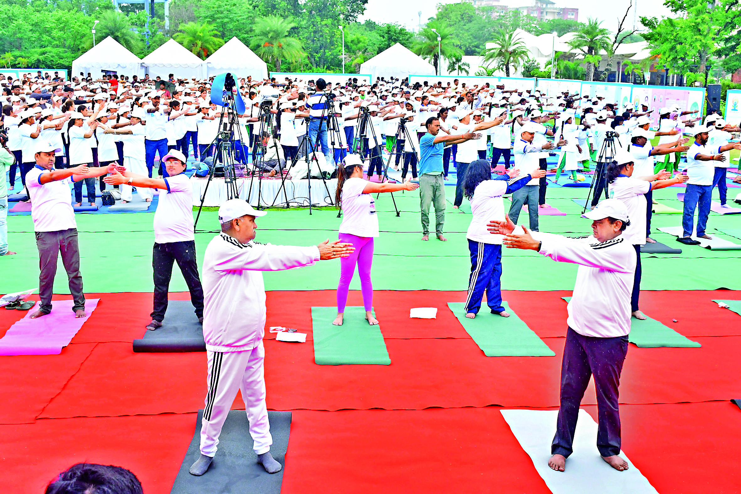 रांची. अंतरराष्ट्रीय योग दिवस पर शनिवार को राज्य सरकार की ओर से रांची के पुराने जेल परिसर स्थित बिरसा फन पार्क में मुख्य कार्यक्रम का आयोजन किया गया. बतौर मुख्य अतिथि स्वास्थ्य मंत्री डॉ इरफान अंसारी, विधायक सीपी सिंह व स्वास्थ्य विभाग के अपर मुख्य सचिव अजय कुमार सिंह ने योग किया. योग प्रशिक्षक डॉ अर्चना के मार्गदर्शन में सबने योगाभ्यास किया. इस दौरान बड़ी एलइडी स्क्रीन पर लोगों ने प्रधानमंत्री नरेंद्र मोदी के योग कार्यक्रम का भी सीधा प्रसारण देखा. स्वास्थ्य मंत्री डॉ इरफान अंसारी ने कहा कि राज्य में योग को बढ़ावा देने के लिए सरकार हरसंभव प्रयास कर रही है. सरकार विभिन्न जिलों में 27 पंचकर्म केंद्र खोलेगी. इसे आयुष्मान हेल्थ कॉटेज के नाम से जाना जायेगा.