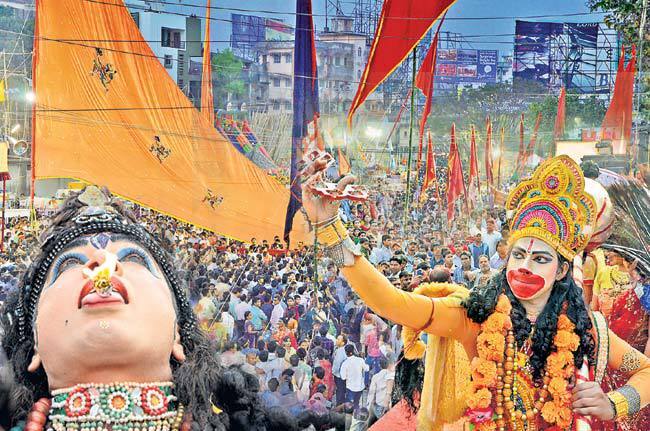 दिन के दो बजे निकली शोभायात्रा दिन के दो बजे सात जगहों से एक साथ गाजा-बाजा व पारंपरिक अस्त्रों के साथ मुख्य शोभायात्रा निकली. हालांकि, कई जगहों पर हल्की बूंदाबादी के कारण थोड़ी परेशानी हुई, लेकिन राम भक्त इसकी परवाह किये बगैर आगे बढ़ते रहे. कई जगहों पर युवा झंडे को लेकर दौड़ रहे थे. वहीं, कई प्रमुख चौक-चौराहों पर झंडों का प्रदर्शन भी कर रहे थे. मुख्य शोभायात्रा शाम साढ़े चार बजे के करीब अलबर्ट एक्का चौक पहुंची. सबसे आगे अध्यक्ष जय सिंह यादव व मंत्री सतीश यादव सहित अन्य पदाधिकारी खुली जीप में हाथ में तलवार लिये हुए थे.