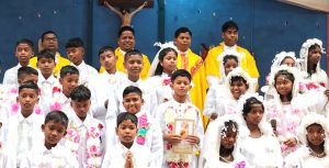 प्रतिनिधि, मांडर. संत अलोइस कैथोलिक चर्च मांडर में सफेद रविवार धूमधाम से मनाया गया. पल्ली के 61 बच्चों को पहला परम प्रसाद ग्रहण कराया गया. इस दौरान बच्चों ने ईश्वर को धन्यवाद दिया और परम प्रसाद ग्रहण किया. मुख्य अनुष्ठाता मांडर पल्ली के पल्ली पुरोहित फादर बिपिन कंडुलना ने मिस्सा पूजा करायी. फादर बिपिन ने अपने संदेश में कहा कि पवित्र यूख्रीस्त सभी प्रकार की कृपाओं का स्रोत है. प्रभु यीशु रोटी और दाखरस के रूप में अपना शरीर और रक्त देते हैं जो हमारे जीवन के लिए आध्यात्मिक भोजन है. परम प्रसाद ग्रहण करने से बच्चों को पवित्र आत्मा का वरदान मिलता है. उन्हें अच्छा जीवन जीने की प्रेरणा मिलती है. मौके पर फादर जॉन शैलेंद्र टोप्पो, फादर चोन्हास तिग्गा, फादर संजय, काथलिक सभा के सदस्य, महिला संघ के सदस्य, युवा संघ के सदस्य सहित सिस्टर सरोज, सिस्टर शिवानी, नवीन टोप्पो, नेल्सन तिर्की, सुश्री विवियाना एक्का, अंजलुस खलखो व अन्य मसीही विश्वासी मौजूद थे.