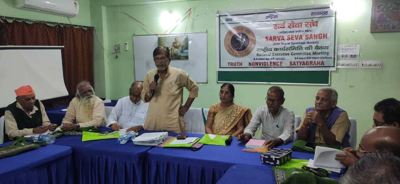 महात्मा गांधी की ऐतिहासिक झारखंड यात्रा के शताब्दी वर्ष पर अखिल भारतीय सर्व सेवा संघ की राष्ट्रीय कार्यकारिणी समिति की दो दिवसीय बैठक कांके स्थित बदलाव इंस्टीट्यूट के सभागार में हुई. अध्यक्षता सर्व सेवा संघ (अखिल भारत सर्वोदय मंडल) के राष्ट्रीय अध्यक्ष आदित्य पटनायक ने की. बैठक में जानकारी दी गयी कि महात्मा गांधी आठ और नौ अगस्त 1925 को रांची आये थे. गांधीजी के विचारों से प्रेरित भूदान आंदोलन ने आजादी के बाद देश भर में सामाजिक क्रांति का मार्ग प्रशस्त किया था. आचार्य विनोबा भावे के नेतृत्व में करीब 48 लाख एकड़ भूमि का दान मिला था, जिनमें से 14.5 लाख एकड़ भूमि केवल झारखंड से थी. लेकिन, भूदान आंदोलन के 74 वर्ष बीत जाने के बाद भी झारखंड में लगभग 9.5 लाख एकड़ भूमि का वितरण नहीं हो पाया है.असम सरकार ने भूदान अधिनियम को समाप्त कर दिया