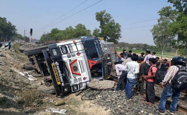 नामकुम : रेलवे ट्रैक पर पलटा ट्रक, दो घंटे तक रेल सेवा बाधित