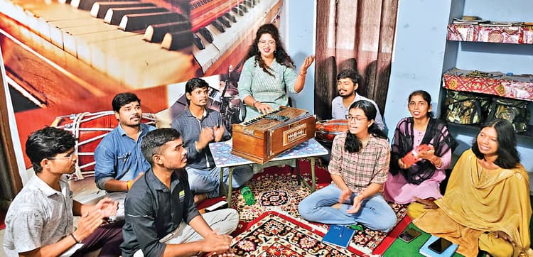 रांची. विश्व संगीत दिवस की पूर्व संध्या पर मोरहाबादी स्थित तरन्नुम संगीत संस्थान में शुक्रवार को गीत-संगीत कार्यक्रम का आयोजन हुआ. संस्थान की निदेशक व गायिका डॉ मृणालिनी अखौरी ने छात्र-छात्राओं के साथ गीत-संगीत की महफिल जमाई. छात्र-छात्राओं ने भजन, गीत और गजल पेश की. डॉ मृणालिनी ने बताया कि आज के तनाव भरे जीवन में सभी सुकून की तलाश में रहते हैं. ऐसे में इंसान के जीवन में योग जितना असरदार है, उतना ही संगीत भी कारगर है, जो इंसान के दिल और दिमाग पर प्रभावकारी असर करता है. कार्यक्रम में डॉ मृणालिनी के साथ ढोलक पर विवेक देव वर्मा, गायन में बसंत कुमार शर्मा, संतोष कुमार, राहुल रजक, राजकुमार, सत्येंद्र यादव, अंबिका राज, प्रियंका देवी व अंबिका वर्मा ने अपनी प्रस्तुति दी.