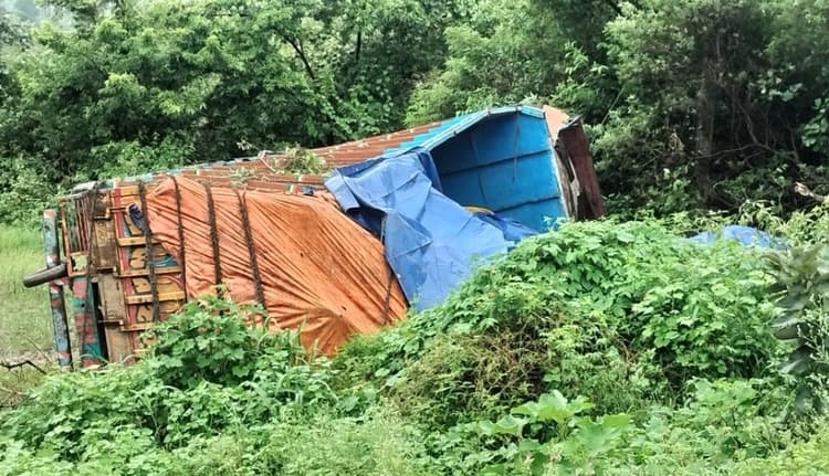सिल्ली. पश्चिम बंगाल से रांची की ओर जा रहे एक आलू लदे ट्रक (जेएच 01 बीएफ 2296) मंगलवार को किता हरवाडीह पुल के समीप पलट गया. घटना में बाइक सवार बाल-बाल बच गये. पुल के समीप स्थित महतो होटल के किचन की छत क्षतिग्रस्त हो गयी. ट्रक पलटने से बिजली का तीन पोल तार भी टूट गया है. इससे हरवाडीह एवं आसपास के गांव में बिजली भी बाधित हो गयी है. जानकारी के मुताबिक ट्रक अपनी रफ्तार से पुल पर चढ़ रहा था एक और ट्रक सामने से पास ले रहा था इसी क्रम में सामने से तेज गति से बाइक सवार ट्रक को ओवरटेक करने के चक्कर में दोनों ट्रकों के बीच घुस गया. आलू लदे ट्रक का चालक बाइक को बचाने के चक्कर में पुल के नीचे आ गया. नीचे गिरते हुए बिजली केन तार और पास के होटल की छत को नुकसान पहुंचा गया.