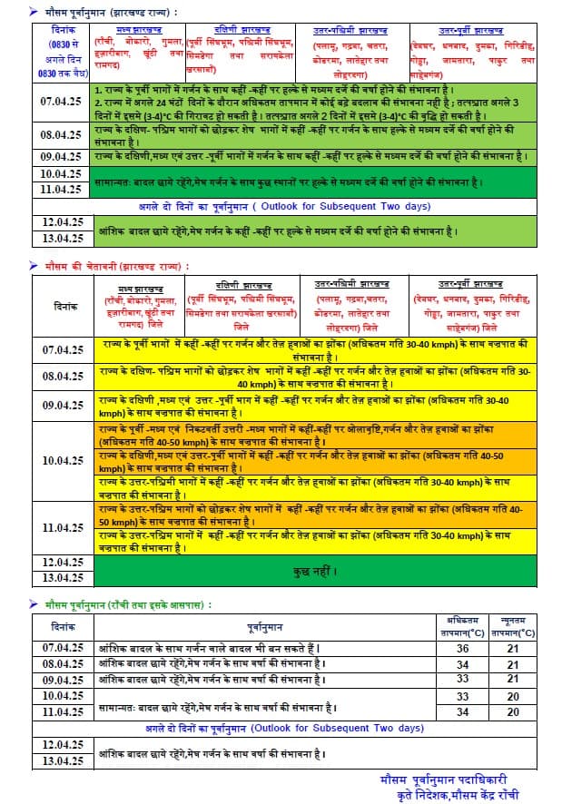 झारखंड में आज से बदलेगा मौसम, तेज हवाओं के साथ बारिश और वज्रपात, चिलचिलाती धूप से मिलेगी राहत