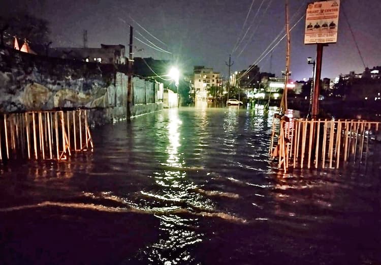 बुधवार की शाम राजधानी में करीब एक घंटे तक झमाझम बारिश हुई. इसके बाद रात भर फुहार पड़ती रही. झमाझम बारिश के कारण शहर में जगह-जगह सड़क पर नाली का गंदा पानी बहने लगा. जिससे वाहन चालकों व पूजा घूमने निकले श्रद्धालुओं को काफी परेशानी का सामना करना पड़ा. इस बारिश ने नगर निगम की सफाई व्यवस्था की पोल खोलकर रख दी. नालियां जाम होने के कारण पानी सड़कों पर बह रहा था. हरमू रोड, चेशायर होम रोड, कोकर डिस्टलरी पुल के समीप, पीस रोड, सेवा सदन पथ, औघड़ बाबा आश्रम, बहू बाजार, ओवरब्रिज के समीप, रांची रेलवे स्टेशन के समीप नाली का पानी सड़कों पर बह रहा था.डिस्क्लेमर: यह प्रभात खबर समाचार पत्र की ऑटोमेटेड न्यूज फीड है. इसे प्रभात खबर डॉट कॉम की टीम ने संपादित नहीं किया है