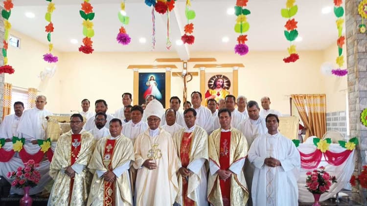 रांची. आर्चबिशप विसेंट आईंद ने सोमवार को आरागेट पल्ली के बड़कुंबा गांव में नये गिरजाघर का अभिषेक और उद्घाटन किया. यह गिरजाघर संत एंथोनी को समर्पित है. नये गिरजाघर में मिस्सा बलिदान का भी आयोजन हुआ. आर्चबिशप ने कहा कि प्रत्येक व्यक्ति में अनेक क्षमताएं हैं. उन्होंने कहा कि विश्वास एक जरूरी चीज है और हम साधारण होने पर भी अपने जीवन के द्वारा अपने विश्वास को दूसरों को दिखा सकते हैं. अपने जीवन और शब्दों के माध्यम से विश्वास का साक्षी बनने का संदेश दिया. समारोह में पल्ली का संक्षिप्त इतिहास पढ़कर सुनाया गया. कार्यक्रम में गिरजाघर के निर्माण में सहयोग करनेवाले लोगों को सम्मानित किया गया. इस अवसर पर संत फिदेलिस प्रोविंस के डेलीगेट फादर रंजीत एक्का, खिजरी विधायक राजेश कच्छप, आरागेट के पल्ली पुरोहित फादर बेसिल रुंडा, सहायक पल्ली पुरोहित फादर मुक्ति प्रकाश, फादर संतोष डिसूजा, फादर जॉर्ज लकड़ा, फादर साइमन मुर्मू, फादर आनंद भेंगरा, आर्चबिशप के सचिव फादर असीम मिंज आदि मौजूद थे.