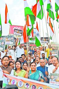 कांग्रेस भवन से अलबर्ट एक्का चौक तक तिरंगा यात्रा निकाली गयी, मंत्री-विधायक हुए शामिल.
