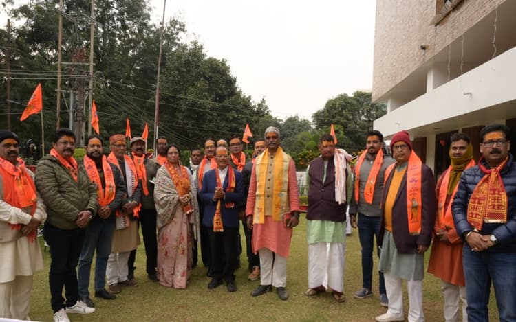 रांची: श्रीराम जन्मभूमि तीर्थ क्षेत्र के आह्वान पर 22 जनवरी को अयोध्या जी में हो रही श्रीरामलला की प्राण प्रतिष्ठा के दिन झारखंड के 51 हजार से अधिक मंदिरों में सुबह 10 बजे से धार्मिक अनुष्ठान, पूजन, भजन, कीर्तन, हनुमान चालीसा पाठ, सुंदरकांड पाठ, श्रीरामचरितमानस का पाठ किया जाएगा. यह बात विश्व हिंदू परिषद के प्रांत अध्यक्ष पंचम सिंह ने रांची के मोरहाबादी में प्रेस वार्ता कर कही. उन्होंने कहा कि अयोध्या राम मंदिर में हो रहे कार्यक्रम का राज्य के हजारों मंदिर परिसरों में लाइव प्रसारण की भी व्यवस्था की जा रही है. इसकी तैयारी में समस्त हिंदू समाज के साथ विश्व हिंदू परिषद, बजरंग दल सहित राष्ट्रीय स्वयंसेवक संघ के सभी अनुषांगिक संगठन, सभी धार्मिक, आध्यात्मिक, सामाजिक संगठन, मन्दिर समिति के लोग लगे हुए हैं. अयोध्या जी में हो रहे मर्यादा पुरुषोत्तम भगवान श्रीरामलला की प्राण प्रतिष्ठा के कार्यक्रम में सम्मिलित होने का परम सौभाग्य प्राप्त हो रहा है. इससे वास्तव में उनका जीवन धन्य हो गया.