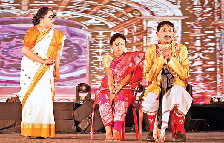 कोलकाता के मल्हार कर्मकार बैंड ने संगीत की प्रस्तुति दी. उन्होंने बेहाग ज्याेदी ना होए राजी…,आमी चेये चेये देखी सारा दिन…आदि गीत प्रस्तुत किये, जिसका लोगों ने खूब आनंद लिया.नाटक यम ऐप ने खूब हंसाया