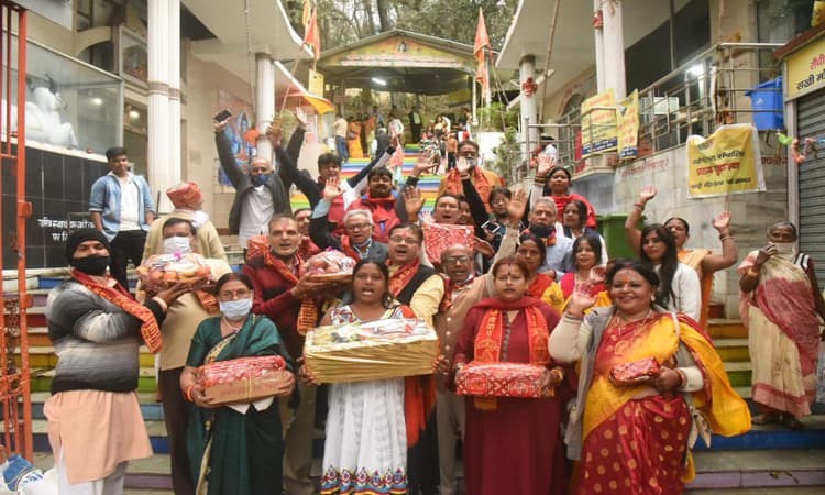 Basant Panchami 2021, Jharkhand News, Ranchi News, रांची : झारखंड की राजधानी रांची के पहाड़ी बाबा मंदिर में वसंत पंचमी के अवसर पर बाबा भोलेनाथ का तिलक चढ़ाया है. इस दौरान तिलकोत्सव शोभायात्रा भी निकाली गयी. श्रद्धालु तिलकोत्सव की सामग्री, फल, मिठाई आदि लेकर लेकर सोशल डिस्टैंसिंग बनाते हुए पहाड़ी बाबा की जयकारे के साथ शोभायात्रा में शामिल हुए.