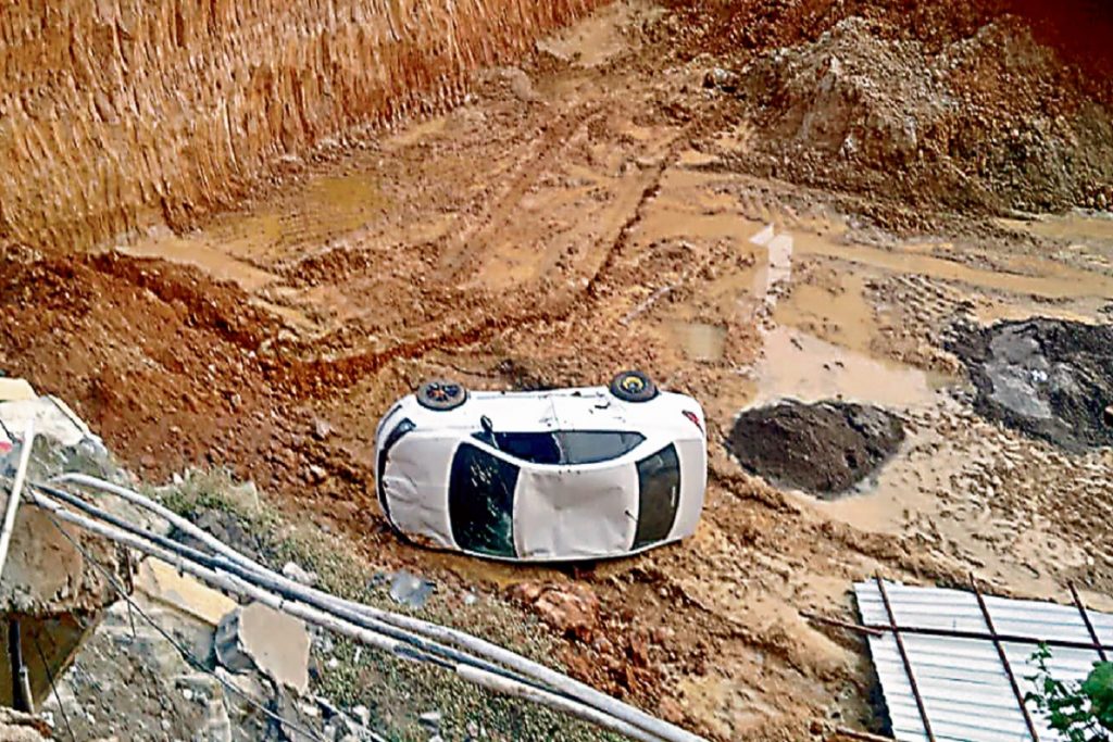 बिल्डर की मनमानी से मोरहाबादी स्थित ‘रतन हाइट’ में रहनेवाले लोगों की नींद उड़ गयी है. 12 मंजिला इस अपार्टमेंट के बगल में बिल्डर बीकेएस कंस्ट्रक्शन द्वारा दूसरे अपार्टमेंट का निर्माण किया जा रहा है. इसके लिए इतनी गहरी नींव खोदी गयी है कि पहले से बगल में बने रतन हाइट की दीवारों में दरारें आ गयी हैं. अपार्टमेंट तक जानेवाली पीसीसी सड़क भी धंस गयी हैं. वहीं, इस पीसीसी रोड के किनारे रखा गया जेनरेटर भी लटक गया है. इस गहरी नींव में सोमवार को एक कार गिर गयी. गनीमत रही कि कोई बड़ा हादसा नहीं हुआ.