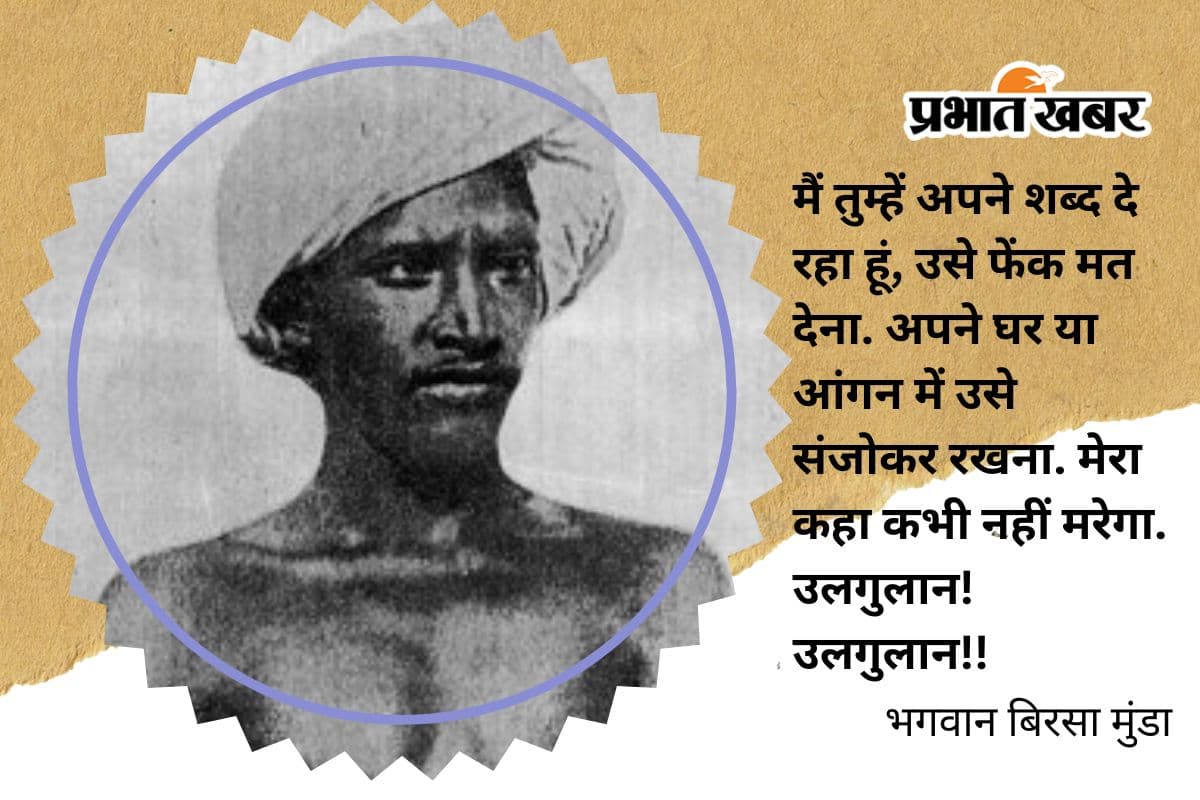 भगवान बिरसा मुंडा को गिरफ्तार कर जब जेल ले जाया जा रहा था, तब उन्होंने आदिवासियों का आह्वान किया था. यह उनके विचारों की अमरता और विद्रोह की भावना को दर्शाता है. बिरसा ने कहा था- ‘मैं तुम्हें अपने शब्द दे रहा हूं, उसे फेंक मत देना. अपने घर या आंगन में उसे संजोकर रखना. मेरा कहा कभी नहीं मरेगा. उलगुलान! उलगुलान!!’