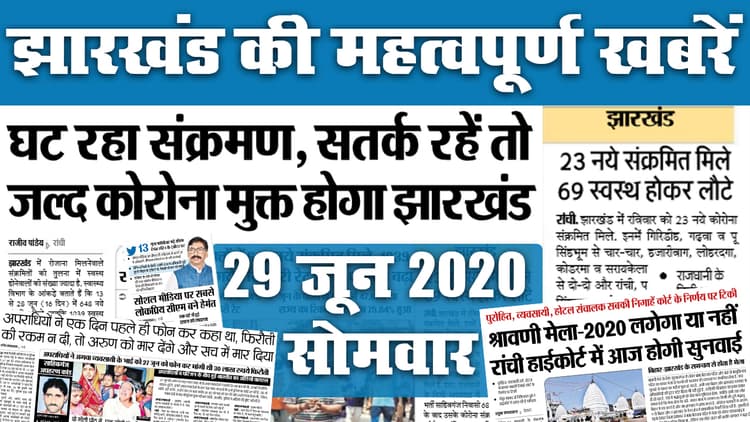 Jharkhand News, Coronavirus, Para Teacher News today, Banna Gupta, Sudesh Mahto : लॉकडाउन के समय कंपनियां नहीं आ रही थी. लेकिन, अब वापस बीआइटी सिंदरी के छात्रों पर नौकरी की बारिश शुरू हो गई है. सबसे ज्यादा टीसीएस से ऑफर आ रहे हैं. इधर, पारा शिक्षकों के स्थायीकरण व वेतनमान को लेकर प्रस्ताव तैयार कर दिया गया है. जिसके अनुसार शिक्षकों को वेतनमान पाने के लिए तीन अवसर दिए जायेंगे. वहीं, कोरोना के राज्य में रिकार्ड मामले दर्ज किये गये है. इससे स्वास्थ्य मंत्री बन्ना गुप्ता के अलावा सुदेश महतो भी संक्रमित पाये गए है. कुल1266 नये मामले झारखंड में मंगलवार को सामने आये है.