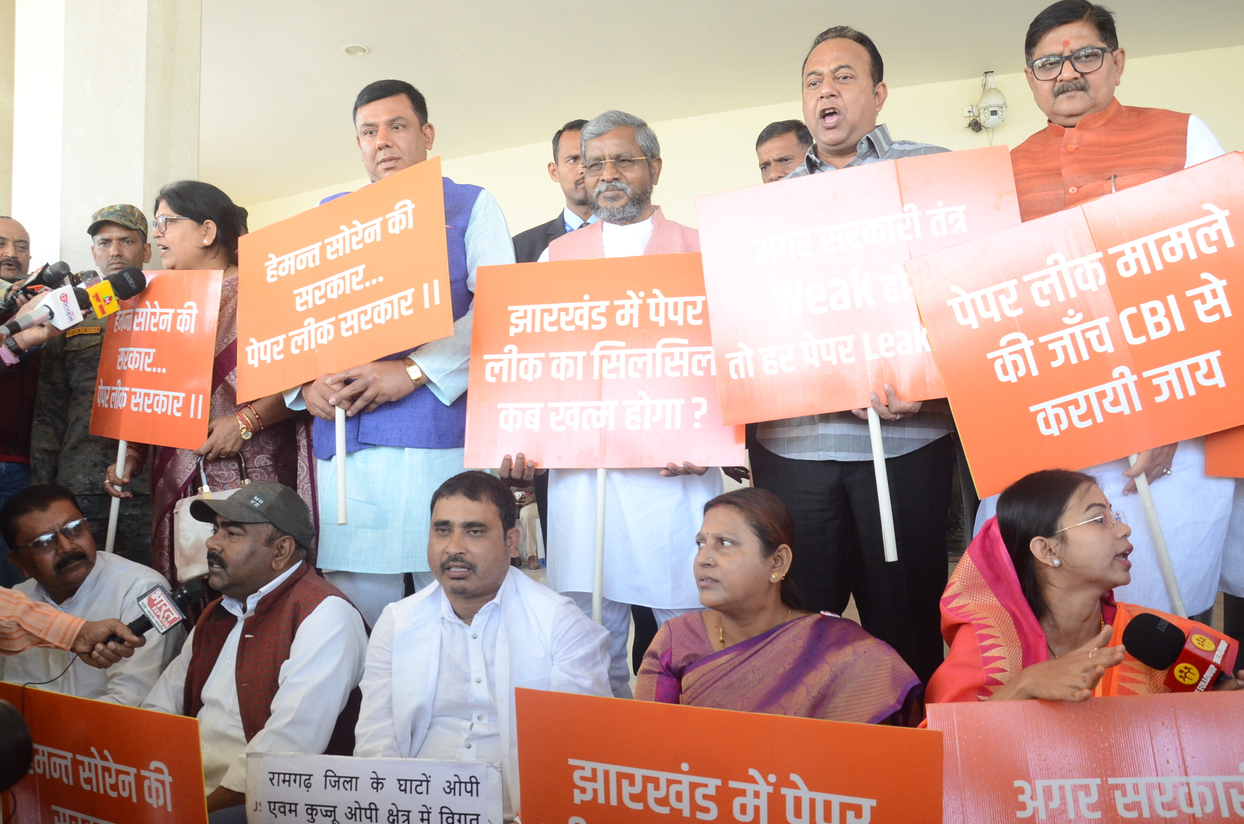 रांची. विधानसभा में बजट सत्र के दूसरे दिन मंगलवार को भाजपा विधायकों ने जैक 10वीं बोर्ड परीक्षा के पेपर लीक मामले को लेकर विरोध प्रदर्शन किया. भाजपा के विधायक हाथों में तख्तियां लिये हुए थे, जिस पर लिखा था- हेमंत सोरेन की सरकार लीक की सरकार, झारखंड में पेपर लीक का सिलसिला कम खत्म होगा, पेपर लीक मामले की जांच सीबीआइ से करायी जाये.