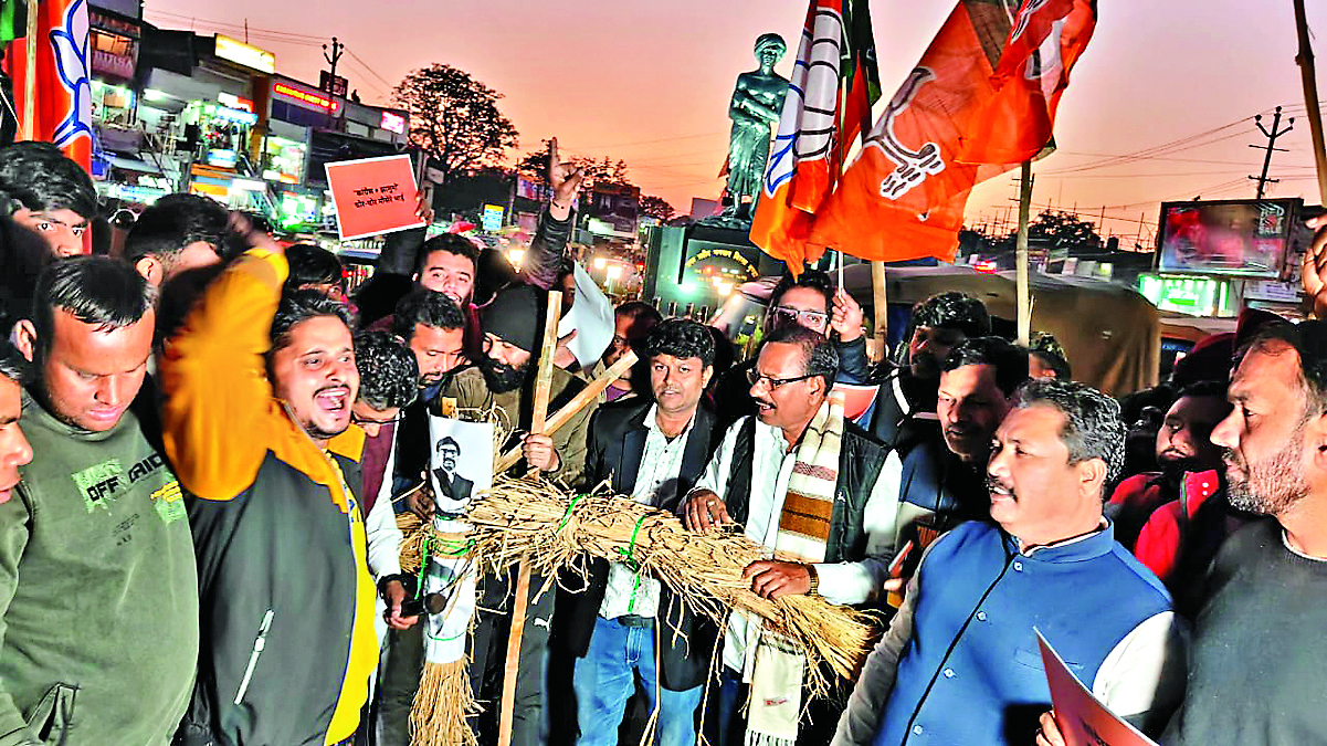 भाजयुमो ने धीरज साहू का फूंका पुतला, प्रदर्शन