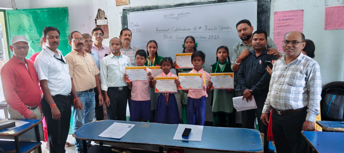 खलारी. जिला शिक्षा अधीक्षक रांची द्वारा संचालित रांची स्पीक्स कार्यक्रम के एक वर्ष पूरे होने के उपलक्ष्य में पीएमश्री राजकीयकृत मध्य विद्यालय खलारी में प्रखंड स्तरीय भाषण प्रतियोगिता का आयोजन किया गया. कार्यक्रम का नेतृत्व प्रखंड कार्यक्रम पदाधिकारी सर्वरीनाथ चौरसिया ने किया. प्रतियोगिता में वर्ग एक से पांच तथा छह से आठ के स्तर पर चयनित प्रतिभागियों ने हिस्सा लिया. वर्ग एक से पांच के खंड में एनपीएस केडीएच सरना क्लब की छात्रा अंशु कुमारी ने निर्णायक मंडली से 100 अंक प्राप्त कर प्रथम स्थान प्राप्त किया. ध्रुप कुमार (जीयूएमएस कोलपारा) 97 अंक के साथ द्वितीय एवं हसनैन अंसारी (जीपीएस मायापुर) 86 अंक के साथ तृतीय स्थान पर रहे.वहीं वर्ग 6 से 8 के खंड में पीहू कुमारी (जीएमएस करकट्टा) ने 97 अंक लाकर प्रथम स्थान प्राप्त किया. पल्लवी कुमारी (जीएमएस डकरा) ने 86 अंक के साथ द्वितीय तथा प्रियंका कुमारी (जीयूएचएस राय) ने 83 अंक के साथ तृतीय स्थान प्राप्त किया. निर्णायक मंडली में शिक्षिका सुमन कुमारी, शिवेंद्र कुमार नायक, नूतन प्रभात गिद्ध एवं सोनालाल महतो शामिल थे. इस अवसर पर शिक्षक अनुज कुमार गुप्ता, उदय प्रताप सिंह, आदर्श वाजपेयी, उत्तरा कुमार, गंगा महतो, अनूप सिंह, तेरेसा टोप्पो, पवन कुमार, गजाधर महतो समेत कई गणमान्य लोग उपस्थित थे.