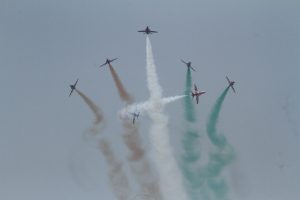 ranchi news : रांची में जांबाज पायलटों ने नौ हॉक जेट्स फाइटर से दिखाया जलवा, सूर्यकिरण एयरोबेटिक टीम के अद्वितीय करतबों ने किया रोमांचित