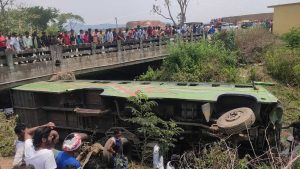 पुलिया की रेलिंग तोड़ नीचे गिरी बस, 33 घायल