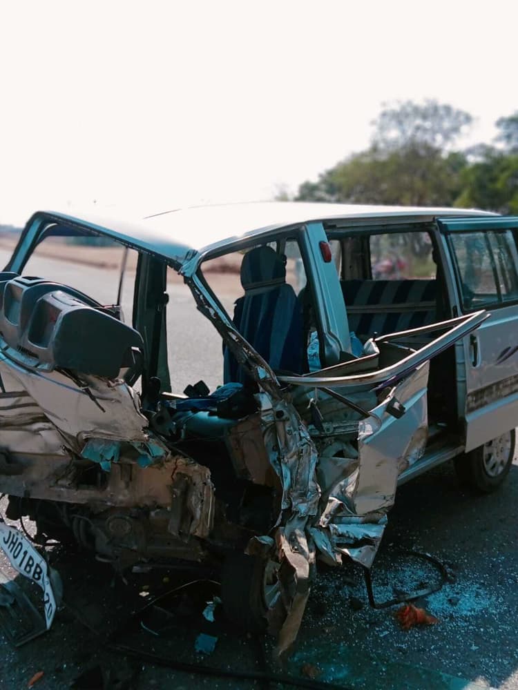 बेड़ो. रांची-गुमला मार्ग पर हाठू मोड़ के समीप मंगलवार को अपराह्न ढाई बजे गुमला से आ रही यात्री बस ने एक मारुति वैन को चपेट में ले लिया. इस हादसे में वैन में सवार चालक समेत पांच लोग गंभीर रूप से घायल हो गये. घायलों में खलारी निवासी रामावतार केशरी (70) बतिया देवी (65), सरिता देवी (45) मंजू देवी (35) व राय निवासी कार चालक कैलाश साव (40) शामिल हैं. घायलों को पूर्व मुखिया बुधराम बाड़ा व समाजसेवी तंजीर हुसैन ने पीसीआर के सहयोग से सामुदायिक स्वास्थ्य केंद्र बेड़ो पहुंचाया. वहां से चिकित्सकों ने रामवतार केशरी व सरिता देवी को रिम्स रेफर कर दिया. जानकारी के अनुसार वैन में सवार सभी लोग खलारी से भरनो (गुमला) जा रहे थे. इसी दौरान गुमला की ओर से आ रही यात्री बस ने कार को चपेट में ले लिया.