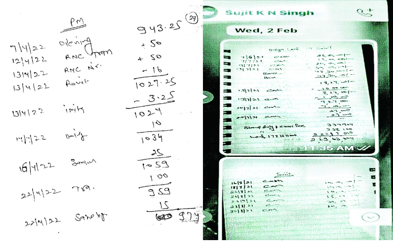 छापामारी में मिले दस्तावेज में सरकार के बड़े अधिकारियों का उल्लेख होने की वजह से ही इडी की ओर से कोर्ट में यह कहा जाता था कि वह छापामारी में मिले दस्तावेज और अन्य सूचनाएं राज्य सरकार की एजेंसियों के साथ शेयर नहीं करना चाहती है. सुमन कुमार ने पूछताछ के दौरान अपनी डायरी में लिखे ‘पीएम‘ कोड वर्ड का इस्तेमाल पूजा मैडम के लिए करने की बाद स्वीकार की है. साथ ही डायरी अपनी लिखावट में होने की बात स्वीकार की है. पीएम कोड वर्ड के लिए लेन देन का ब्योरा इडी की छापामारी से करीब एक महीने पहले से है. इससे पहले के हिसाब-किताब का ब्योरा सुमन के पास नहीं मिला. इससे इस बात की आशंका जतायी जा रही है कि सुमन ने उसे नष्ट कर दिया होगा. इस डायरी के एक पन्ने में सात अप्रैल 2022 से 22अप्रैल 2022 तक का हिसाब लिखा हुआ है. डायरी में सात अप्रैल की तिथि पर ओपनिंग बैलेंस 943.25 लिखा हुआ है.