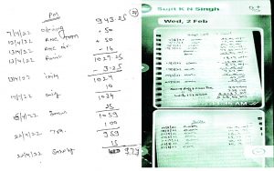 डायरी में राशि के उल्लेख के लिए लाख इकाई का इस्तेमाल किया गया है. यानी डायरी के अनुसार सात अप्रैल 2022 के दिन ‘पीएम’ के नाम पर नौ करोड़ 43 लाख 25 हजार रुपये जमा था. डायरी में हिसाब किताब के लिए जोड़ और घटाव के चिह्न का इस्तेमाल किया गया है. पैसा आने पर जोड़ और सुमन के पास जमा पैसों में से किसी को देने पर घटाव के चिह्न का इस्तेमाल किया गया है. डायरी के एक दूसरे पन्ने में वर्ष 2021 के दौरान जमीन खरीद के दौरान दी गयी राशि के अलावा स्टैंप ड्यूटी और कोर्ट फीस मद में हुए खर्च का ब्योरा दर्ज है.