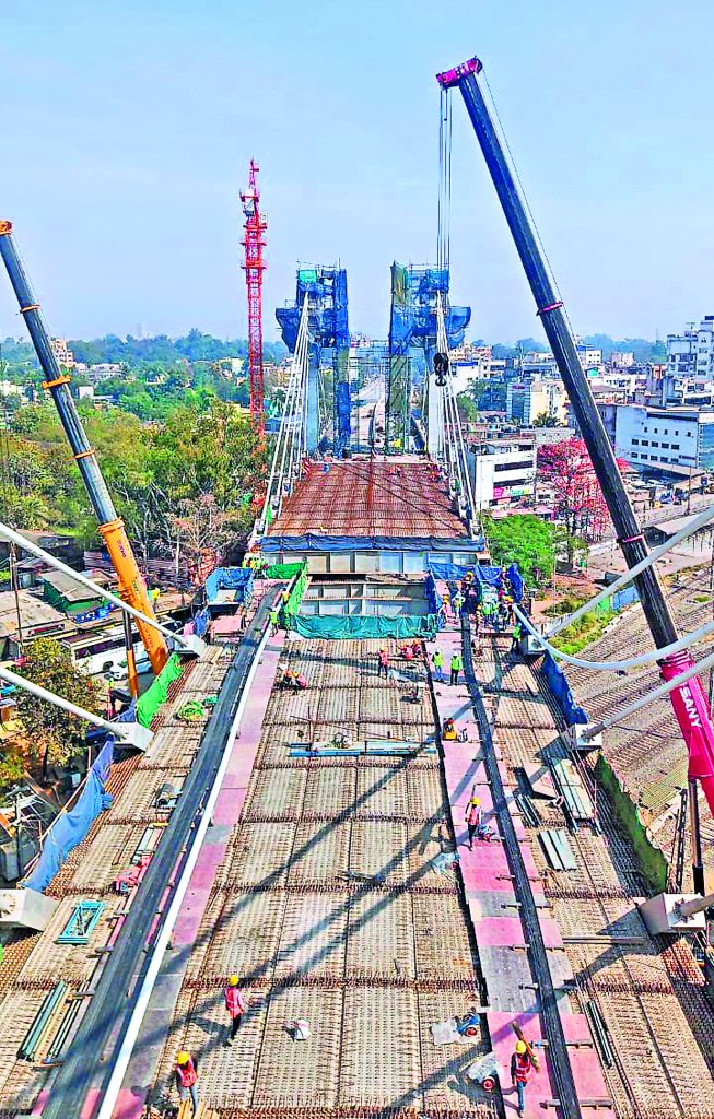 Ranchi news : और 40 घंटे के ब्लॉक में पूरा हो जायेगा केबल स्टे ब्रिज का काम