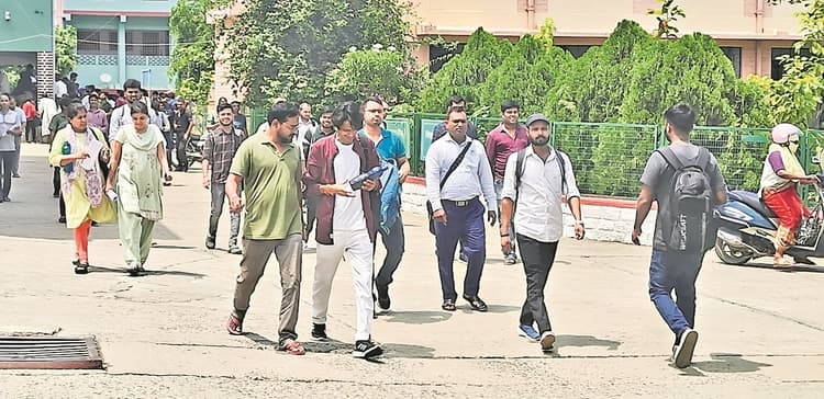 सभी पेपर में शामिल होना अनिवार्य : शनिवार को प्रथम व द्वितीय पेपर की परीक्षा हुई. 23 जून को तृतीय व चतुर्थ पेपर तथा 24 जून को अंतिम दिन पांचवें व छठे पेपर की परीक्षा होगी. परीक्षार्थियों ने सभी प्रश्नों पर संतोष व्यक्त किया. आयोग के नियमानुसार अभ्यर्थी को सभी पेपर की परीक्षा में शामिल होना अनिवार्य है. शामिल नहीं होने पर मेधा सूची में ऐसे अभ्यर्थियों को शामिल नहीं किया जायेगा. मालूम हो कि पीटी में 7011 अभ्यर्थी मुख्य परीक्षा के लिए चयनित हुए थे.