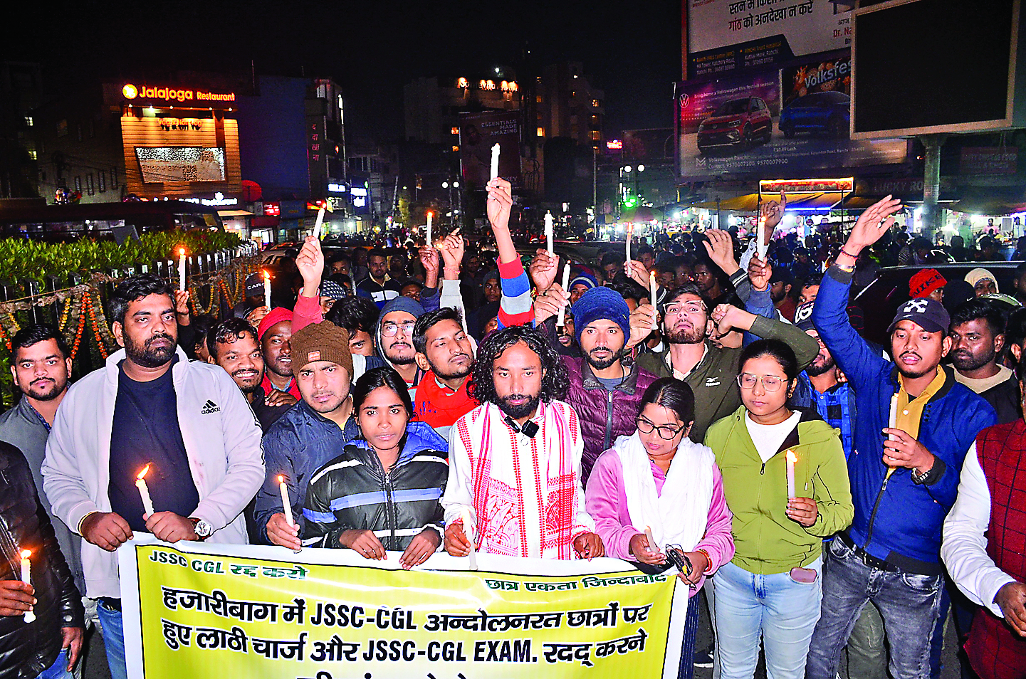 कैंडल मार्च व प्रदर्शन के कारण सड़क जाम की स्थिति बनी रही. सीजीएल परीक्षाफल में धांधली का आरोप लगाते हुए कहा गया कि कट ऑफ अंक जारी नहीं कर सीधे चयनित अभ्यर्थियों की सूची जारी की गयी है. पहले दिन 21 सितंबर की परीक्षा में सिर्फ 82 अभ्यर्थियों का ही चयन हुआ, जबकि दूसरे दिन 22 सितंबर को हुई परीक्षा में लगभग 2149 अभ्यर्थियों का चयन हुआ है. अभ्यर्थियों के भविष्य का ख्याल रखते हुए तत्काल डॉक्यूमेंट्स वेरिफिकेशन पर रोक लगाने की मांग की गयी. परीक्षाफल को रद्द कर पुनः पारदर्शिता के साथ परीक्षा आयोजित करने की मांग की गयी. कैंडल मार्च में देवेंद्र नाथ महतो के अलावा चंदन रजक, खगेन महतो, हर्षित सिंह, लक्ष्मी कुमारी, रवि मंडल, विजय, प्रभु, विष्णु आदि शामिल थे.