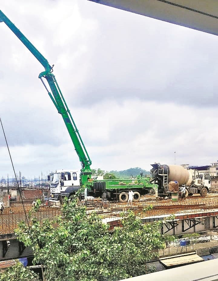 रांची. रातू रोड में एलिवेटेड कॉरिडोर की ढलाई के लिए नया तरीका निकाला गया है. ट्रैफिक की समस्या से निजात पाने के लिए ढलाई के काम के लिए कंक्रीट प्रेशर वाहन को कॉरिडोर के ऊपर चढ़ा दिया गया. पंडरा में बने रैंप के माध्यम से वाहन को लाहकोठी तक लाया गया और ढलाई की गयी.