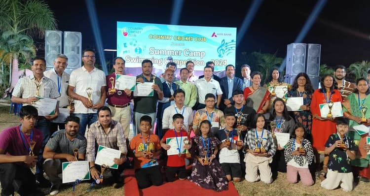 कंट्री क्रिकेट क्लब में तैराकी प्रतियोगिता संपन्न खेल संवाददाता, रांची जेएससीए के कंट्री क्रिकेट क्लब में आयोजित तैराकी प्रतियोगिता मंगलवार देर रात संपन्न हुई. रविवार को शुरू हुई प्रतियोगिता में 5 वर्ष के बच्चों से लेकर 55 वर्ष तक के 170 से अधिक तैराकों (महिला-पुरुष) ने हिस्सा लिया. विजेताओं व उप विजेताओं को आइजी अखिलेश झा ने पुरस्कृत किया. प्रतियोगिता का संचालन विशाखा झा और राजीव रंजन की देखरेख में संपन्न हुआ. प्रतियोगिता के 5-9 वर्ष आयु वर्ग के बालकों में इशांक सिंह विजेता, रियांश भारद्वाज उप विजेता रहे. बालिकाओं में राज शांभवी चैंपियन, उपासना प्रसाद रनर्स अप रहीं. 10-15 वर्ष बालकों (15 मीटर) में शिवम प्रमाणिक विजेता, लक्ष्य तिवारी उप विजेता, बालिकाओं में रचना विजेता, अक्षरा गुप्ता उप विजेता, 10-15 वर्ष बालकों (25 मीटर) में लक्ष्य तिवारी विजेता, लाल प्रत्युष शाहदेव उप विजेता, बालिकाओं में आराध्या सिंह विजेता व रचना उप विजेता रहीं. 16-25 वर्ष पुरुषों (25 मीटर) में कुशाग्र चौधरी विजेता, रत्नम दक्षिणामूर्ति उप विजेता रहे. महिला वर्ग में त्रिशला विजेता व मानवी कौशिक उप विजेता रहीं. 26-35 वर्ष पुरुषों (25 मीटर) में ऋषभ जैन विजेता, विंटर स्क्वॉट उप विजेता, 36-45 वर्ष पुरुषों (25 मीटर) में रवि शंकर सिंह विजेता, देवेश प्रधान उप विजेता, महिला वर्ग में भूमिका विजेता, विभा कुमारी उप विजेता रहीं. वहीं, 46-55 वर्ष पुरुषों (25 मीटर) में संजय जैन विजेता, डॉ राजीव रंजन उप विजेता, महिला वर्ग में नीलम विजेता, वीणा कुमारी उप विजेता, 56 पुरुषों (25 मीटर) में दीपक दत्ता विजेता, लोक नारायण उप विजेता रहे. ओपन टू ऑल ग्रुप में कुशाग्रह चौबे विजेता, रत्नम दक्षिणामूर्ति उप विजेता और अंडरवाटर में ऋषभ जैन विजेता व रत्नम दक्षिणामूर्ति उप विजेता रहे.